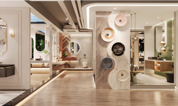 Showroom sắp trình làng sẽ là một phiên bản mang đậm chất nghệ thuật thời thượng khi kết hợp hoàn hảo giữa 4 nhóm ngành với nhau, bao gồm: Thiết bị phòng tắm, thiết bị bếp, nệm & nhăn – ga – gối – đồ vải lanh, ván sàn.